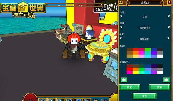 人靠衣装,美靠美妆!虽然在《宝藏世界》里,万事万物都是由色彩斑斓的方块组成,但是论起美来,小短腿儿们可是还没输给过谁呢!且不说各式各样的服饰、武器等等大项,就说大家的第一印象头发吧!《宝藏世界》有一个神奇的工作台叫理发台,在这里,你可以自由改变自己的形象,是做英武雄壮的套马汉子,还是做软萌可爱的萝莉软妹,你完全可以转换自如!在理发台,你还可以给自己化妆,不死族啦,海盗啦,随心选择自己的面妆吧!其次,都说眼睛是心灵的窗口,你想要金发碧眼还是深邃黑眸,别怕,大胆去自定义!最后要说到的就是头发啦,在这里无论男女,你都有几十种发型可以选择,小脏辫儿,爆炸头,淑女盘发?你想要的style这里全都有!还可以自由定义发色哦,七彩头发任你选!