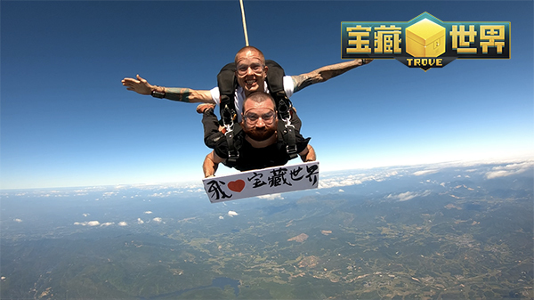 这位名叫Olex的疯狂玩家是一名乌克兰小哥,来中国工作已有5年。作为TROVE的忠实粉丝,他是Steam上最早一批老玩家,也是最早从Steam转战《宝藏世界》国服的玩家之一。这位小哥身边有许多中国朋友,大家经常在一起玩游戏。受身边中国友人影响,他来到了国服。他表示,“和大家一起玩国服可以让我的汉语进步”。在看到《宝藏世界》创意征集活动后,Olex和朋友一起商量,决定搞点“有意思的事情”。Olex并不是一个职业跳伞运动员,这次挑战极限跳伞高度——4000米,也正是带着“我为你上天”的满满诚意而完成!