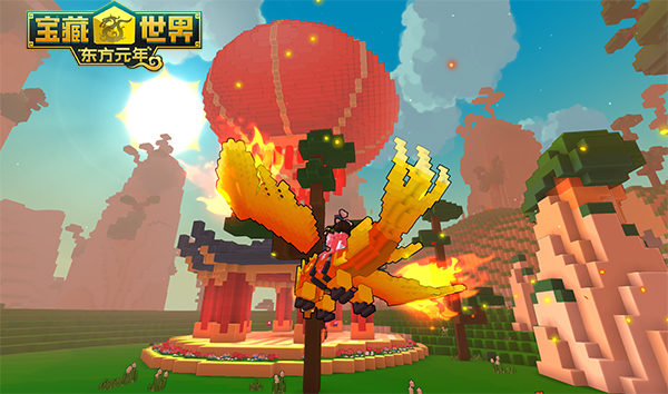 2018年现已进入倒计时,而全新版本东方元年现已全面开启,中国风沙盒世界现已敞开它的神秘大门!全新版本以盘龙、青铜器、兵马俑等为主题,恢宏壮观的古典中国建筑极尽富丽奢华。此外,全新中国风坐骑凤凰浴火上线,将古老中国气息带给每一个冒险家。凤凰,传说中的百鸟之王,寓意吉祥如意,是古老中国传说中象征祥瑞的文化符号之一。现在,飞凤坐骑男天女皇欧巴黎现已正式降落在《宝藏世界》中,飞凤坐骑参照古籍中对凤的描述,以金黄两色为主要配色,将传说中的瑞鸟飞凤带到沙盒世界中。当欧巴黎展开它流光溢彩的双翼,它高贵而华美的气质将展露无遗。当你乘坐飞凤坐骑掠过大地,将会发出耀眼的火焰哦!
