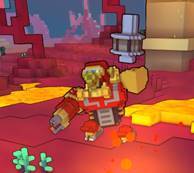 火焰机器人已入侵晶洞顶部,并具有无敌护盾,可以用强力雪球破坏它们的护盾